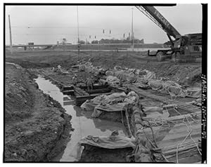 Product Description : Size: 8 x 10 Print51. View looking west, toward the west bay of the lock. A derrick parked on a bench adjacent to U.S. 24 lowers its harness for the raising of a crib back wall section. The flat bed truck used to transport the timbers to the holding tank can be seen in the background, to the right, beyond the crane. - Wabash & Erie Canal, Lock No. 2, 8 miles east of Fort Wayne, adjacent to U.S. Route 24, New Haven, Allen County, IN