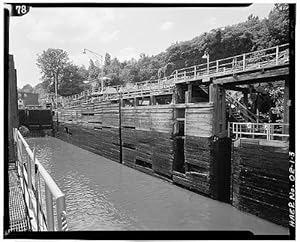 Product Description : Size: 8 x 10 Print3. VIEW OF WEST WALL OF LOCK CHAMBER NO. 1--Photo taken fro east wall looking west; Lock Gate No. 2 in background, part of Lock Gate No, 1 on the right--June 1980 - Willamette Falls Lock Chamber No.1, Willamette River, West Linn, Clackamas County, OR